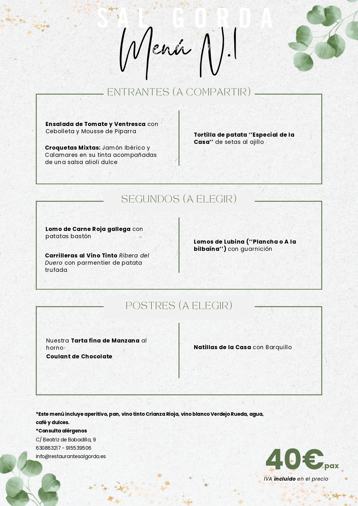 Menú 40€/pax (Mínimo 2 pax)