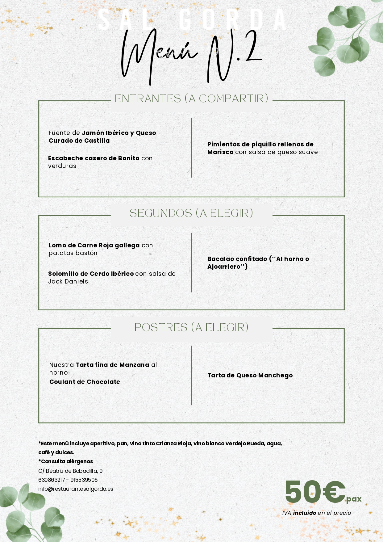 Menú 50€/pax (Mínimo 2 pax)