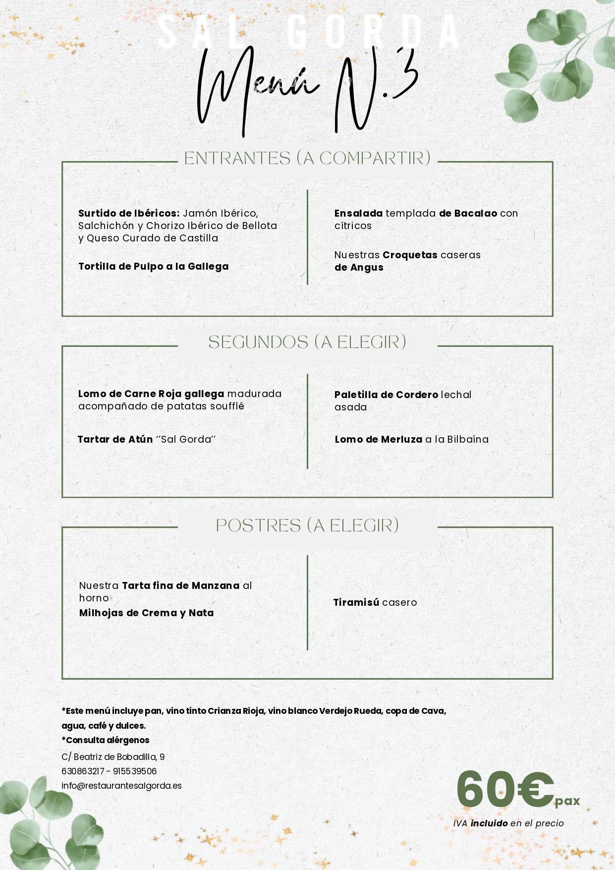 Menú 60€/pax (Mínimo 2 pax)