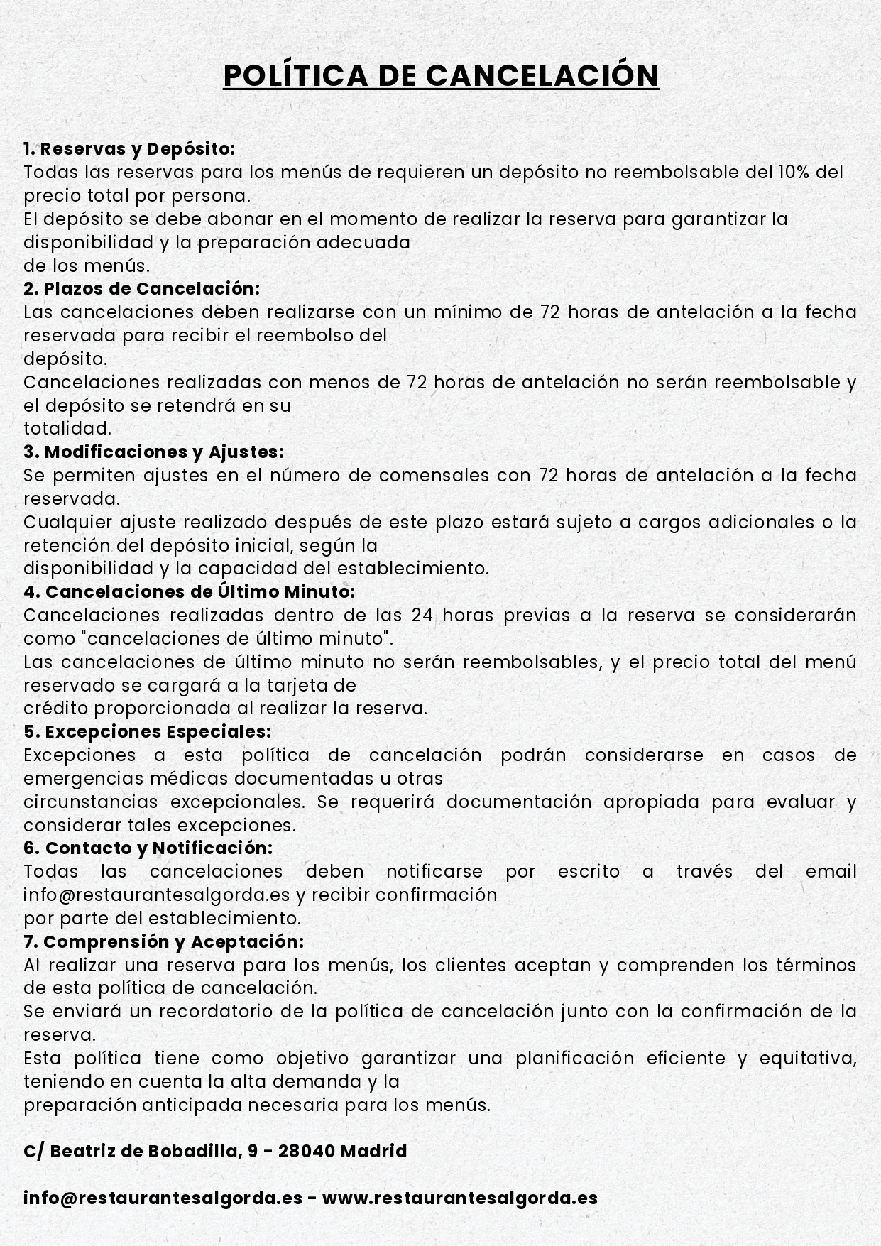 CONDICIONES Y POLÍTICA DE CANCELACIONES
